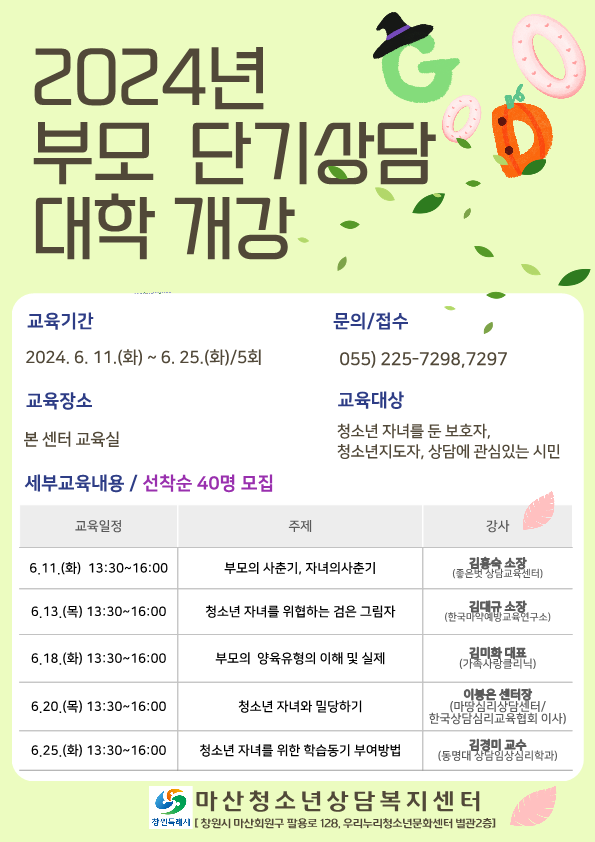 2024년 부모 단기상담 대학 개강 안내